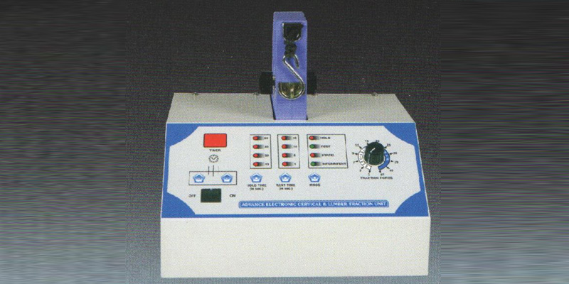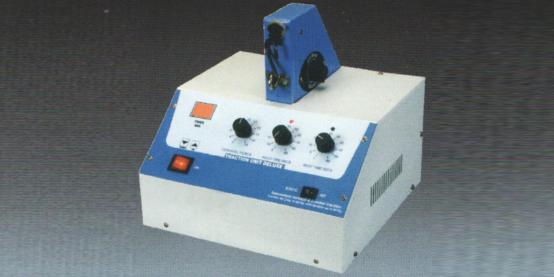 This electronic intermittent machine is an accurate & sturdy unit. improved rekiablity has been achieved using solid state electronics. The silent motor is smooth, reliable & lasting. The traction is of solid construction & is easy to use the traction force can be increased 90 kgs using the traction force doubler. The treatment lime is electronically adjested & displayed by LEDS digitally. At the end of treatment time. the alaram comes up & traction stops