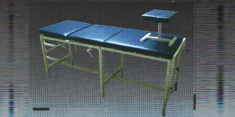 Newly improved three section traction tables for limber of cevical traction. The table is very Sturdy - the overall length of the table is approx. 2336 mm and height of the table is 711 mm Lumber section is top filled with non frection roller bearings for smooth efficent traction. A mounting machine. Table top is elegantly upholstered and can be used as examination table when traction is not in use