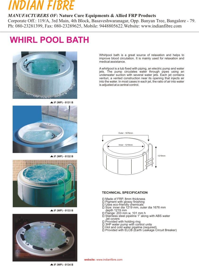 Whirlpool bath is a great source of relaxation and helpsto improve blood circulation. Mainly used for relaxation and medical assistance.